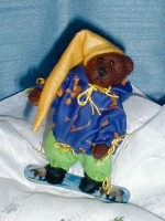 Snowboarder Chris ist nur ca. 13 cm groß und vollständig mit der Nadel handgefilzt.